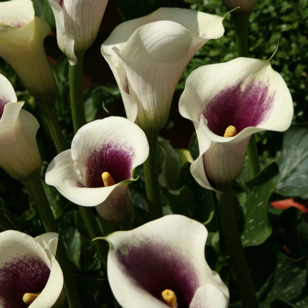 Cala Picasso este o planta perena, usor de cultivat, care va aduce o nota de originalitate si eleganta in gradina ta. Cu o inaltime de pana la 60-80 cm, aceasta cala infloreste abundent vara, oferindu-ti flori mari, in forma de trompeta, de un alb pur, cu pete mov spre baza, creand un contrast vibrant si artistic. Prefera locurile usor umbrite si solul umed, dar bine drenat. Udarea se face regulat, mentinand solul usor umed. Cala este o planta rezistenta la inghet, iar florile sale sunt ideale pentru a fi folosite in buchete sau aranjamente florale moderne.