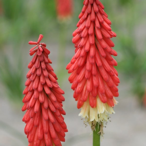 Originara din Africa de Sud, Kniphofia este o planta perena care infloreste abundent in timpul verii. Este apreciata pentru culoarea sa intensa si pentru perioada lunga de inflorire. Kniphofia este ideala pentru a crea aranjamente florale deosebite sau pentru a fi plantata in grupuri. Pentru un efect deosebit, poate fi asociata cu alte plante perene cu frunzis decorativ sau cu graminee ornamentale.