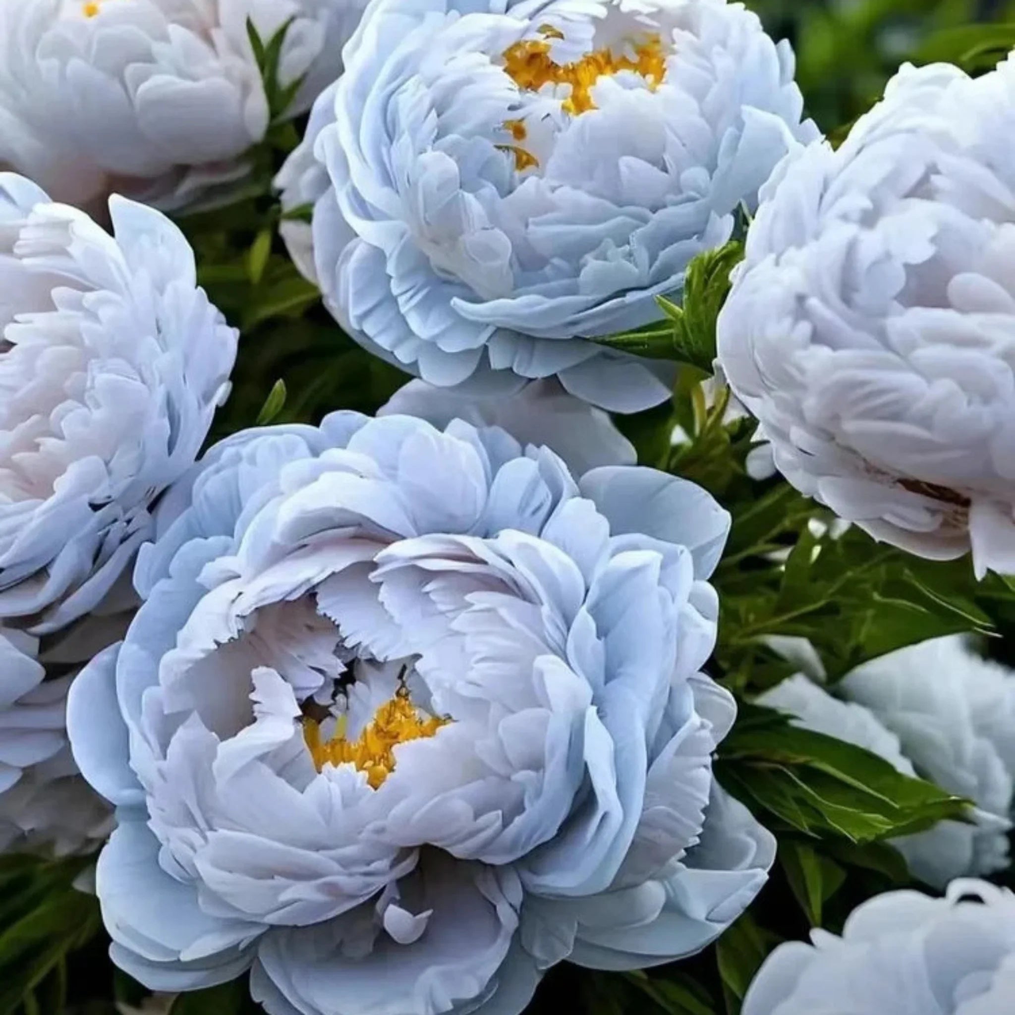 Bujor Arbustiv "Bluey" este o varietate deosebită de bujor, apreciată pentru florile sale mari, delicate, cu o culoare unică și fascinantă. Aceste flori sunt de un albastru-lavandă subtil, cu nuanțe de roz pal și un miros dulce și parfumat. Petalele sunt moi și catifelate, iar inflorescențele sunt bogate și pline, creând o apariție spectaculoasă în grădină.