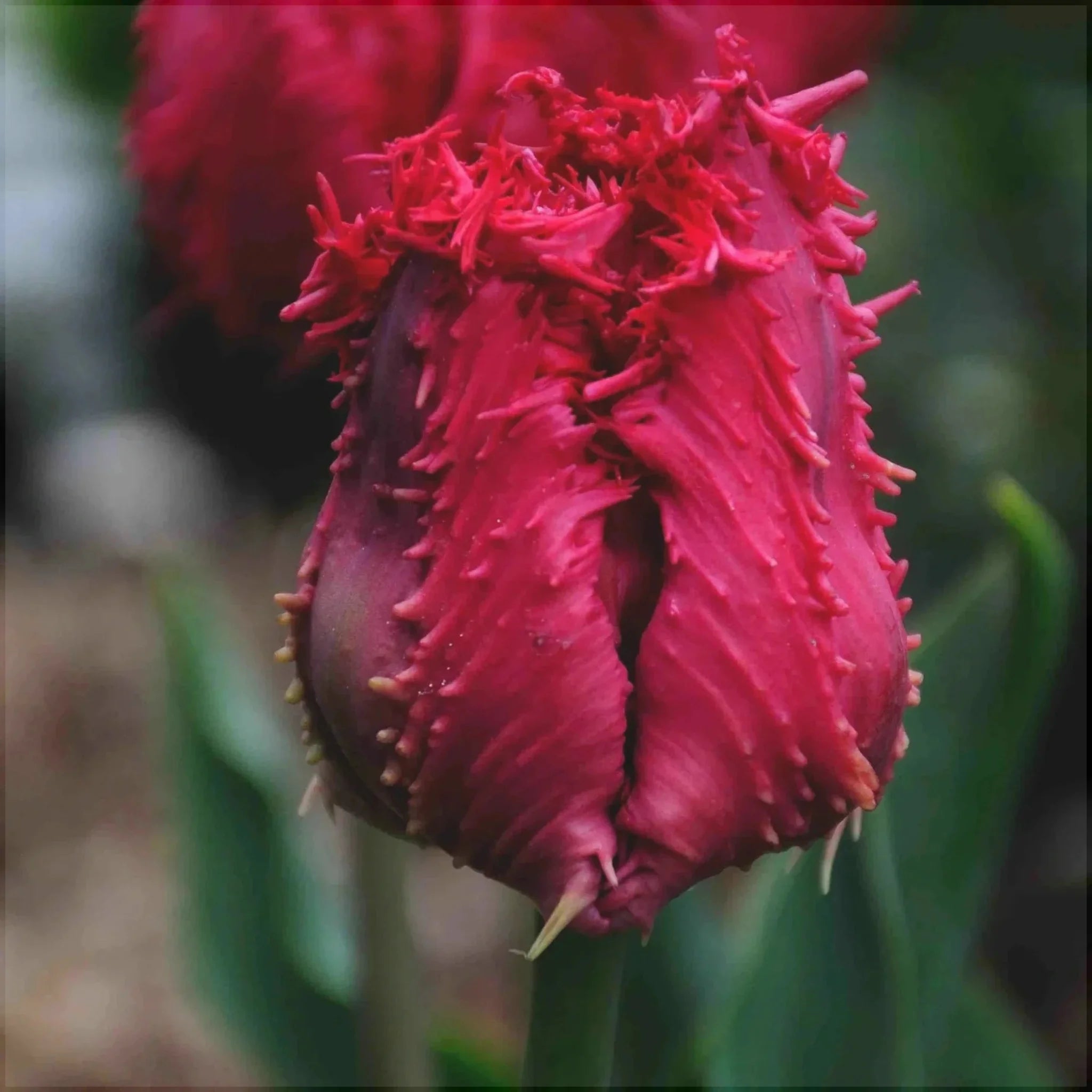 Bulbi Lalele Barbados impresionează prin florile lor franjurate, cu margini spectaculoase și nuanțe intense. Culoarea dominantă este roșu aprins sau roșu vișiniu, uneori cu tonuri purpurii sau reflexii mai închise spre centru.