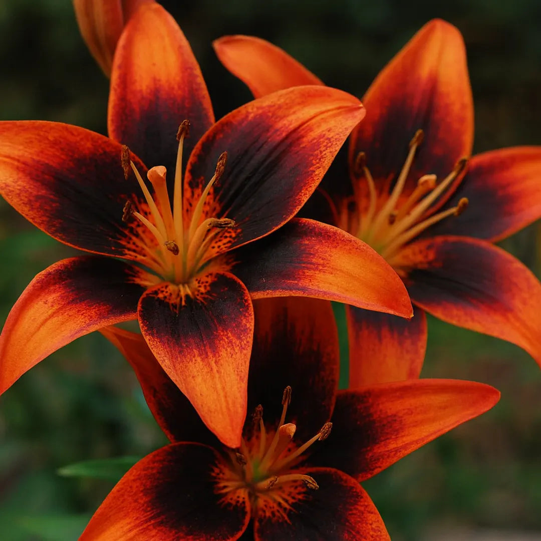 Crinul "Twosome" este o varietate spectaculoasa, cunoscuta pentru florile sale mari si colorate. Fiecare floare are o combinatie unica de nuante: purpuriu inchis la baza petalelor si portocaliu spre varfuri. Prefera locurile insorite si solul bine drenat. Udarea se face regulat, mentinand solul usor umed, dar evitand excesul de apa. Plantarea se face toamna, la o adancime de aproximativ 10-12 cm. Pentru o inflorire abundenta, se recomanda aplicarea unui ingrasamant specific pentru bulbi, primavara.