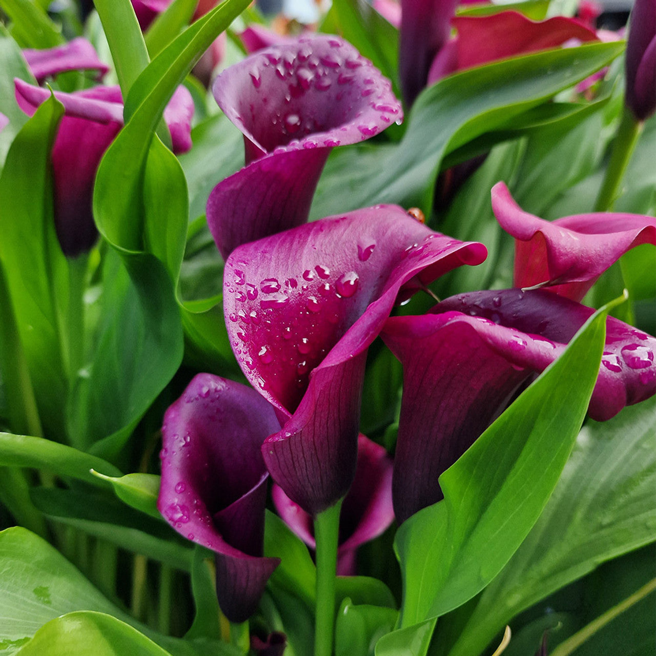 Cala Mov este o planta perena, usor de cultivat, care va aduce o nota de mister si eleganta in gradina ta. Cu o inaltime de pana la 60-80 cm, aceasta cala infloreste abundent vara, oferindu-ti flori mari, in forma de trompeta, de un mov intens si captivant. Prefera locurile usor umbrite si solul umed, dar bine drenat. Udarea se face regulat, mentinand solul usor umed.