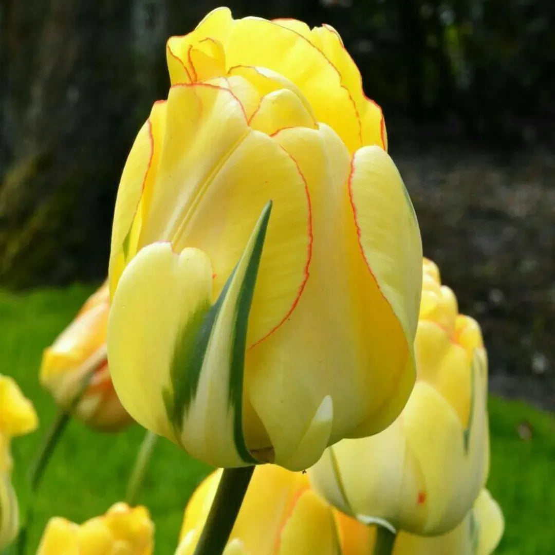Bulbi Lalele Eloria fascinează prin frumusețea florilor lor elegante, cu petale fine și catifelate, în nuanțe de galben deschis, verde pe frunzulițe și accente fine roșii pe marginile petalelor. Jocul subtil de culori creează un efect romantic și rafinat, perfect pentru grădini elegante, borduri ornamentale, ronduri decorative și buchete pline de grație. Planta are tulpini viguroase, frunziș verde sănătos și o înflorire abundentă, aducând prospețime și armonie în orice spațiu.