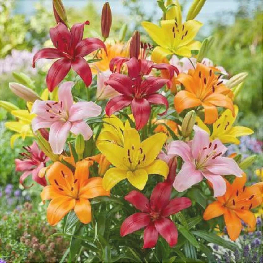 Originari din zonele temperate ale Asiei, crinii sunt apreciati pentru frumusetea si parfumul lor intens. Sunt ideali pentru borduri, ghivece sau ca flori taiate. Cu acest mix de culori, vei avea o gradina plina de viata si culoare pe tot parcursul verii. Crinii sunt plante rezistente si usor de ingrijit, perfecte pentru gradinarit incepator.