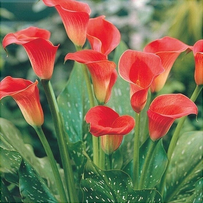 Cala Rosu este o planta perena, usor de cultivat, care va aduce o nota de pasiune si energie in gradina ta. Cu o inaltime de pana la 60-80 cm, aceasta cala infloreste abundent vara, oferindu-ti flori mari, in forma de trompeta, de un rosu intens si vibrant. Prefera locurile usor umbrite si solul umed, dar bine drenat. Udarea se face regulat, mentinand solul usor umed.