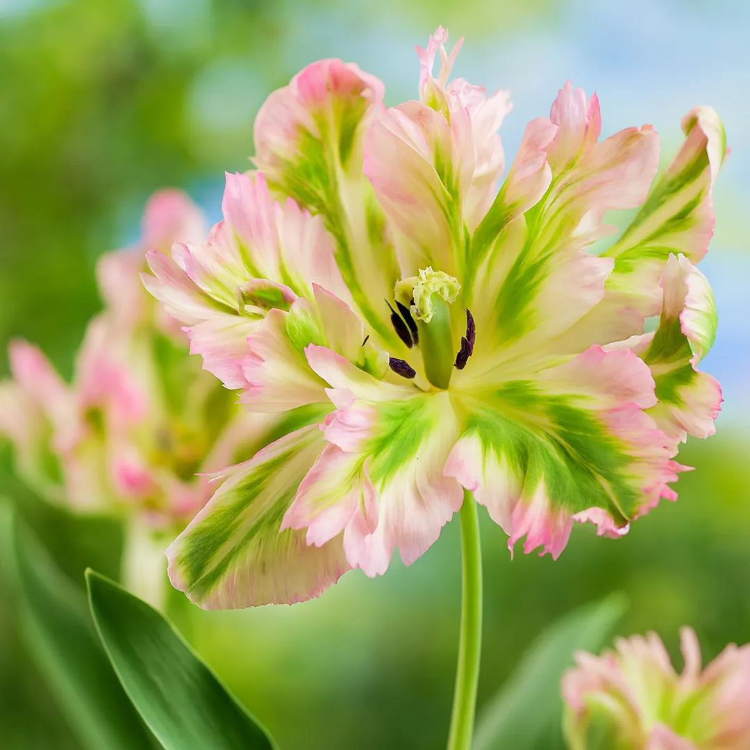 Bulbi de Lalele "Green Wave" aduc o nota de originalitate in orice gradina. Cu petalele lor delicate, in nuante de verde deschis, roz pal si margini alb-crem, aceste lalele creeaza un contrast deosebit cu florile clasice. Prefera locurile insorite sau semi-umbrite si solul bine drenat. Udarea se face regulat, mai ales in perioada de crestere. Lalelele sunt plante rezistente si usor de ingrijit, ideale pentru a fi plantate in grupuri sau in borduri.