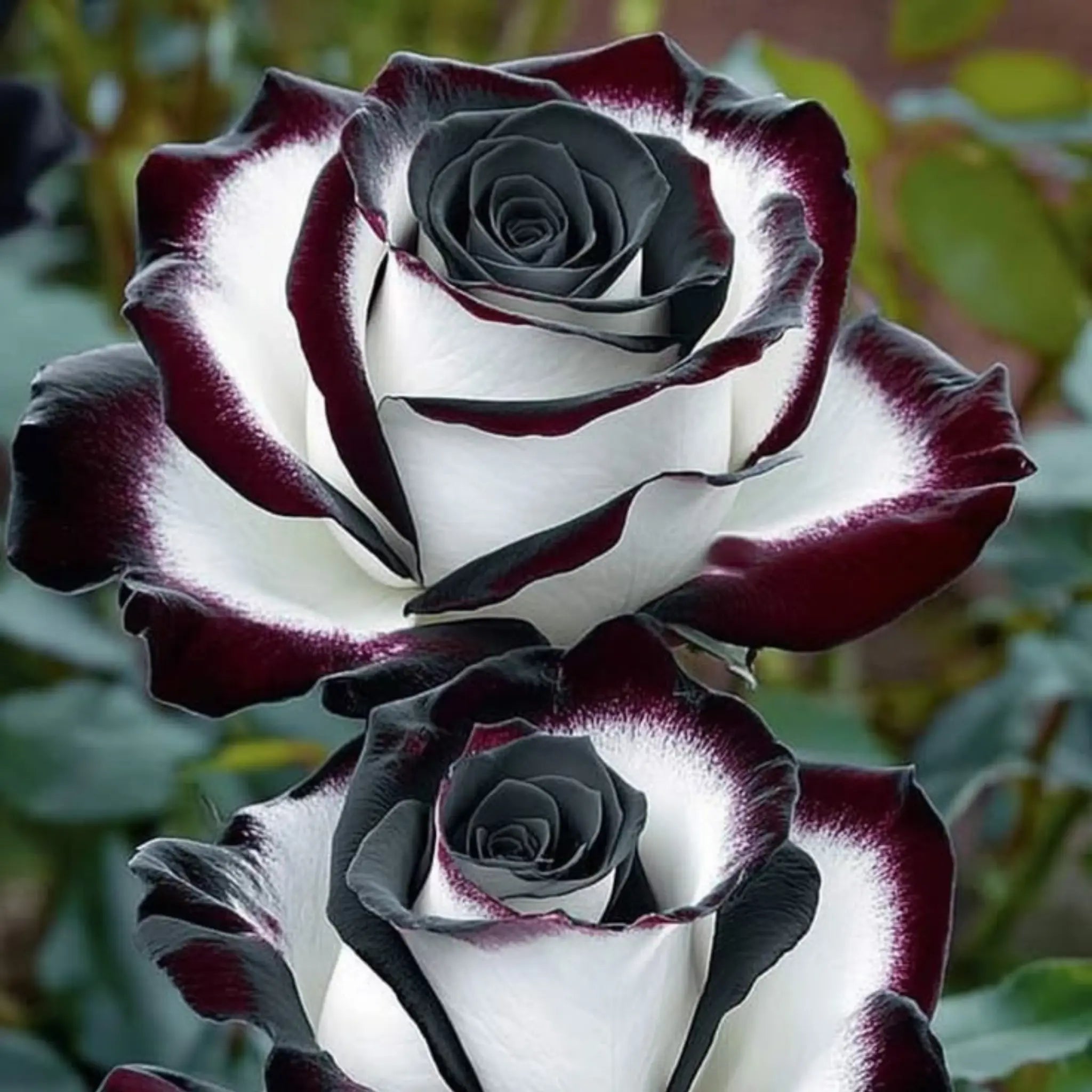 Trandafiri Nociva se remarcă prin florile lor spectaculoase și vibrante, în nuanțe de alb-negru cu accente burgundy intens, cu petale catifelate și aspect luxuriant. Forma florilor este dublă, bogată, iar tufele sunt viguroase, cu frunziș verde intens și lucios. Acest soi are o înflorire repetată, fiind ideal pentru borduri, ronduri ornamentale, grădini romantice și aranjamente florale pline de energie.
