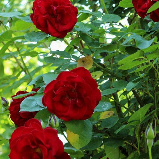 Trandafir Urcător „Cherry Sap” – valuri de flori în nuanțe rubinii Creează un colț romantic și spectaculos în grădina ta cu Trandafirul urcător „Ch...